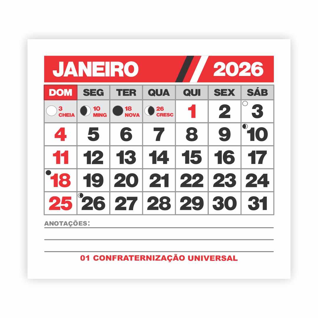 Janeiro, Fevereiro, Março, Abril, Maio, Junho, Julho, Agosto, Setembro, Outubro, Novembro, Dezembro.